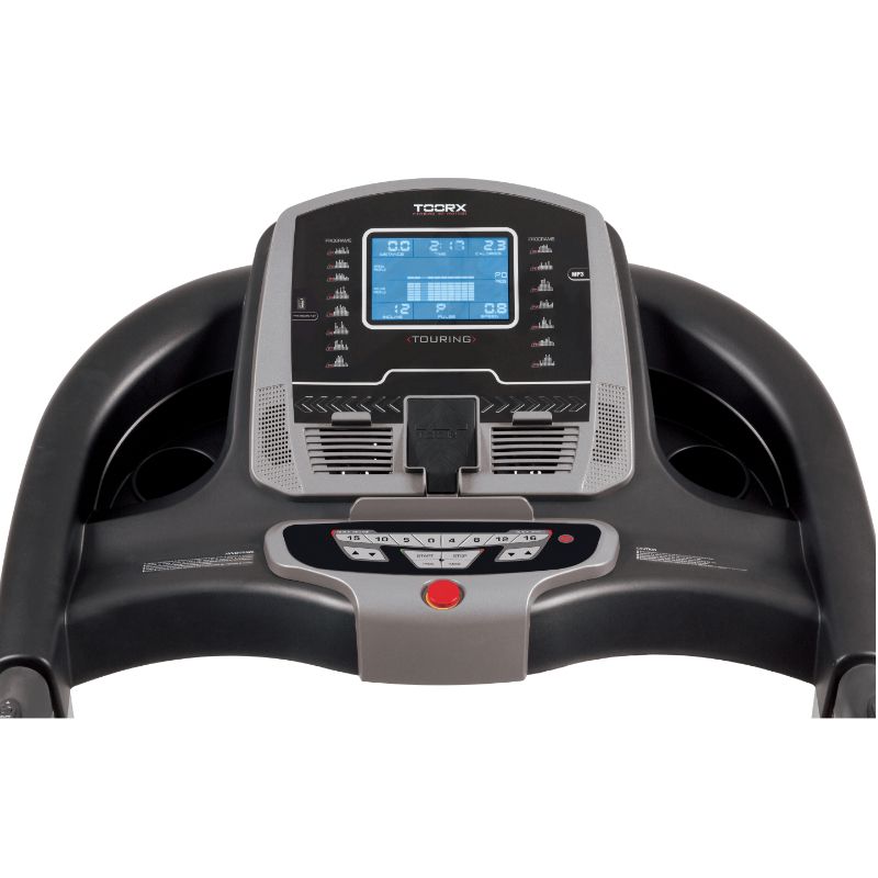Běžecký pás TOORX TOURING 3.0 s širokou běžeckou plochu 148 x 53 cm je ideální pás do domácí posilovny. Trenažér je vybaven tichým a výkonným motorem o síle 3,5 PS, elektronickou regulací stoupání v rozmezí 0-12% a kvalitní rámovou konstrukcí s nosností až 130 kg. Velký LCD displej s modrým podsvícením přehledně zobrazuje všechny důležité tréninkové hodnoty. Pro pestřejší trénink je k dispozici 23 programů, včetně 3 HRC módů pro sledování cílové tepové frekvence nebo 3 uživatelsky nastavitelných profilů. Potěší i další výbava – audio in pro připojení MP3, integrované reproduktory pro poslech oblíbené hudby nebo ventilátor na ochlazení. Další výhodou je rychlá a jednoduchá montáž, pás je z velké části v balení již sestaven.