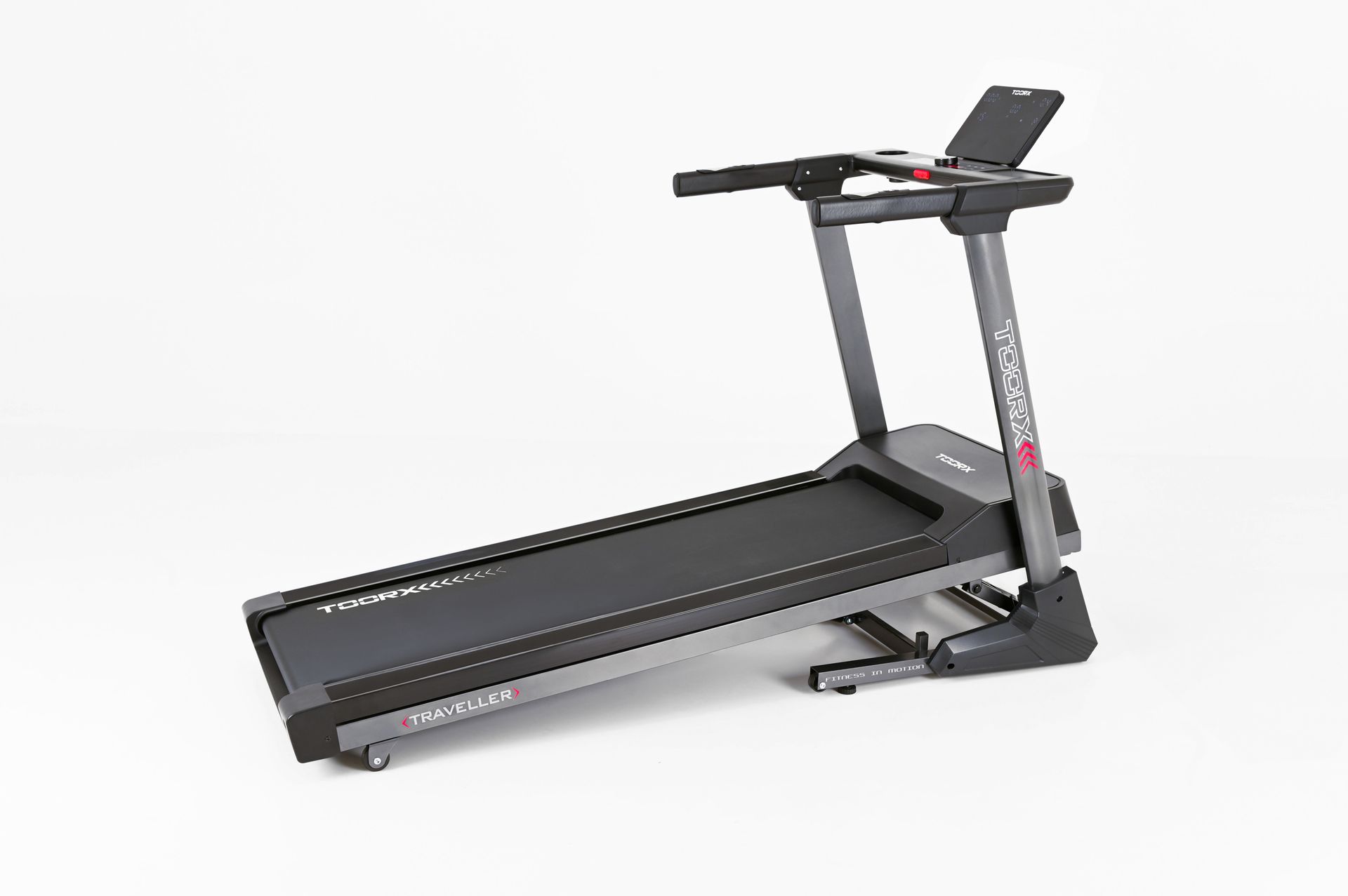 Hledáte parťáka na pravidelný běžecký trénink? Pak zaměřte svoji pozornost na nový běžecký pás TOORX TRAVELLER. Pás kombinuje moderní design s vynikajícím výkonem a technickými vlastnostmi. Trenažér je vybaven tichým a výkonným motorem o síle 2,5 PS, elektronickou regulací stoupání v rozmezí 0-15% a kvalitní rámovou konstrukcí s nosností 120 kg. Kvalitně odpružená běžecká plocha 141 x 48 cm minimalizuje zatížení kloubů a umožní vám trénovat chůzi, klus či běh, a to při maximální rychlosti až 18 km/h. Na 5 LED displejích s bílým podsvícením můžete během tréninku sledovat všechny důležité tréninkové hodnoty. Nechybí bohatá programová nabídka. K dispozici je celkem 24 přednastavených programů, 3 uživatelsky nastavitelné profily nebo 3 HRC módy pro sledování cílové tepové frekvence. Pás je navíc vybaven integrovaným Bluetooth modulem, využít tak lze i kompatibilních tréninkových aplikací Kinomap nebo Zwift (předplatná nejsou v ceně).