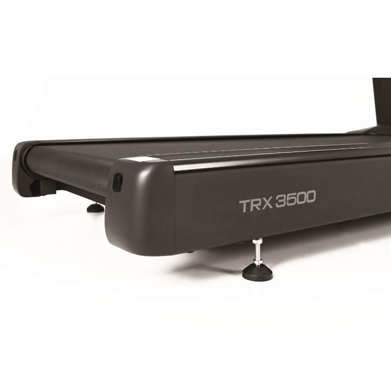 Elegantní, moderní a hlavně výkonný běžecký pás TRX 3500 je modelem z edice trenažérů TOORX Chrono Line Pro. Trenažéry z této řady jsou vhodné nejen na trénink v domácím prostředí, ale díky certifikaci ve třídě S, i pro lehce komerční provoz. Trenažér TRX 3500 je vybaven tichým AC motorem s maximálním výkonem 4,5 PS a běžeckou plochou s nadstandartním rozměrem 164 x 60 cm. Na konzoli se prostřednictvím 7 bíle podsvícených LED displejů zobrazují všechny důležité tréninkové hodnoty. Programová nabídka zahrnuje celkem 9 programů s různou úrovní intenzity, trénink si tak uživatel může přizpůsobit na míru svoji aktuální kondici. Pás je navíc vybaven integrovaným Bluetooth modulem, využít tak lze i kompatibilních tréninkových aplikací Kinomap nebo Zwift (předplatná nejsou v ceně).