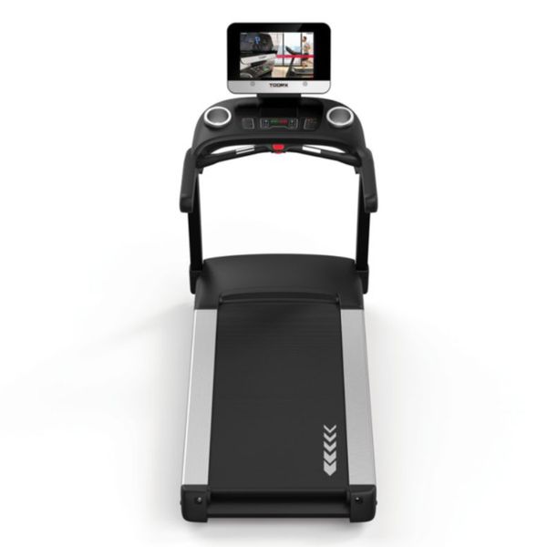Profesionální běžecký pás TOORX TRX 8500 EVO TFT s prvotřídní výbavou je trenažér určený pro trénink náročných uživatelů v domácím prostředí, ale především do plně komerčních provozů. Model je vybaven tichým AC motorem s maximálním výkonem 4,5 PS, prostornou běžeckou plochou 164 x 60 cm s elektronicky ovladatelným sklonem od 0 do 15%. Absolutní novinkou je 15,6" TFT HD dotykový displej s pohodlným ovládáním, který zobrazuje všechny důležité parametry a umožňuje během tréninku sledovat i oblíbené streamovací platformy Netflix, PrimeVideo nebo Youtube. Nechybí ani Bluetooth rozhraní pro propojení s oblíbenými fitness aplikacemi, jako je Kinomap nebo Zwift (předplatná nejsou v ceně).
