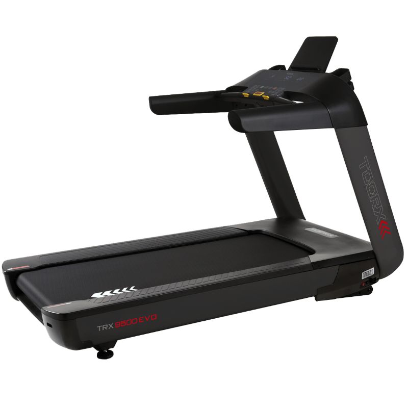 Elegantní běžecký trenažér TRX 9500 EVO s moderní elektronikou a robustní konstrukcí reprezentuje novou řadu profesionálních trenažérů TOORX Full Commercial. Modely z této řady jsou díky vynikajícím technickým vlastnostem i použitým materiálům nejvyšší kvality vhodné jak pro profesionální, tak i pro soukromé využití. Tichý AC motor s maximálním výkonem 6 PS je, spolu s nadstandartní běžeckou plochou 160 x 60 cm, zárukou špičkového tréninku, ať už se rozhodnete pro intenzivní běh, sprint nebo rychlou chůzi. Můžete běžet rychlostí až 25 km/h, a to jak do kopce, tak z kopce díky elektronicky ovládanému sklonu pásu v rozmezí -2% až 18%. Nechybí ani multimediální vybavení jako Bluetooth rozhraní, audio vstup pro MP3, USB port nebo vestavěné reproduktory.