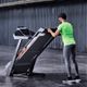 - Snadná manipulace s pásem. Běžecká plocha se dá pomocí Soft-Drop mechanismu jednoduše sklopit. Následnou manipulaci s trenažérem pak usnadní 4 transportní kolečka.