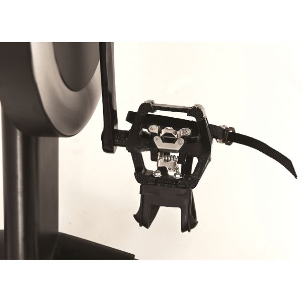 - Vybavení. Výškově i horizontálně nastavitelná multipoziční řídítka, kombinované nášlapné pedály se systémem SPD, stojánek na tablet / smartphone, kolečka pro manipulaci (umístěná vpředu), mechanismus vyrovnávání nerovností podlahy (vpředu i vzadu).