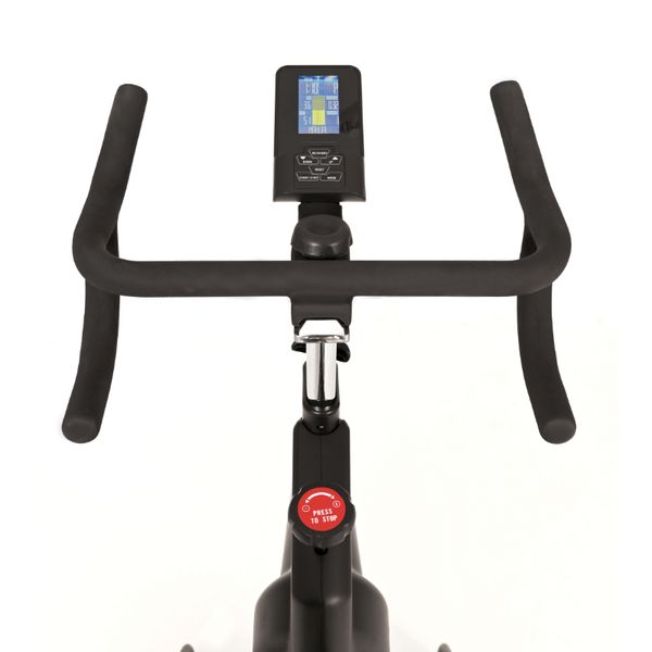 - Displej. Přehledný LCD displej s barevným podsvícením měří čas, rychlost, tréninkovou vzdálenost, puls, spotřebu energie (počet spálených kalorií během tréninku), výkon (ve Wattech) a frekvenci otáček za minutu. Displej udává také údaj o aktuální zátěži. Centrální displej graficky znázorňuje profil tréninku zobrazením úrovně intenzity.
