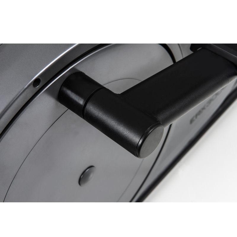 • Další výbava. Ergonomicky tvarované kyvné páky pro trénink horní části těla, dodatečné držadlo uprostřed s dlaňovými senzory pro snímání pulsu a intenzivní trénink dolní části těla, velké nášlapné plochy nastavitelné do 3 pozic pro optimální pohyb trénujícího, držák na tablet nebo smartphone, mechanismus vyrovnávání nerovností podlahy (vpředu i vzadu).