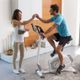 - Vybavení trenažéru. Komfortní sedlo Flexible Foam s možností výškového a horizontálního posuvu (s možností výměny), ergonomická řídítka s variabilním úchopem a výškovou nastavitelností, zesílená konstrukce s hlubokým nástupem pro maximální zatížení až 150 kg, samonastavovací řeménkové pedály, kolečka pro manipulaci (umístěná vpředu), mechanismus vyrovnávání nerovností podlahy (vzadu), stojánek na smartphone nebo tablet.
