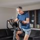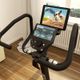- Vybavení trenažéru. Komfortní fitness sedlo s možností výškového a horizontálního posuvu a s úpravou sklonu posedu, ergonomická multifunkční řídítka s výškovou nastavitelností, zesílená konstrukce s hlubokým nástupem pro maximální zatížení až 150 kg, samonastavovací řeménkové pedály, kolečka pro manipulaci (umístěná vpředu), mechanismus vyrovnávání nerovností podlahy (vzadu), stojánek na smartphone nebo tablet.