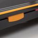 - Jednoduchá manipulace. Pomocí hydraulického tlumiče lze běžeckou plochu snadno sklopit. Následnou manipulaci s trenažérem usnadní transportní kolečka.