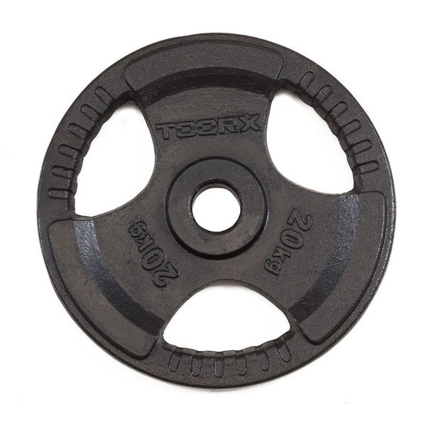 Černý olympijský kotouč TOORX o hmotnosti 20 kg je určen pro všechny typy činkových tyčí o průměru 50 mm. Kotouč je vybaven třemi ergonomicky tvarovanými otvory pro snadnější manipulaci při nakládání na činku. Díky úchytům lze kotouč využít i pro funkční trénink nebo balanční cvičení.