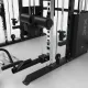 profesionální kladkový stroj s multipressem, výškově nastavitelné protisměrné kladky, kryté závaží 2 x 90 kg, multipress na olympijské kotouče o ø50 mm, 2 výškově nastavitelné J-háky s bezpečnostními zarážkami pro trénink s dlouhou činkou, multiúchopová hrazda, 6 odkládacích trnů na kotouče, řada adaptérů součástí, hmotnost 370 kg