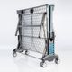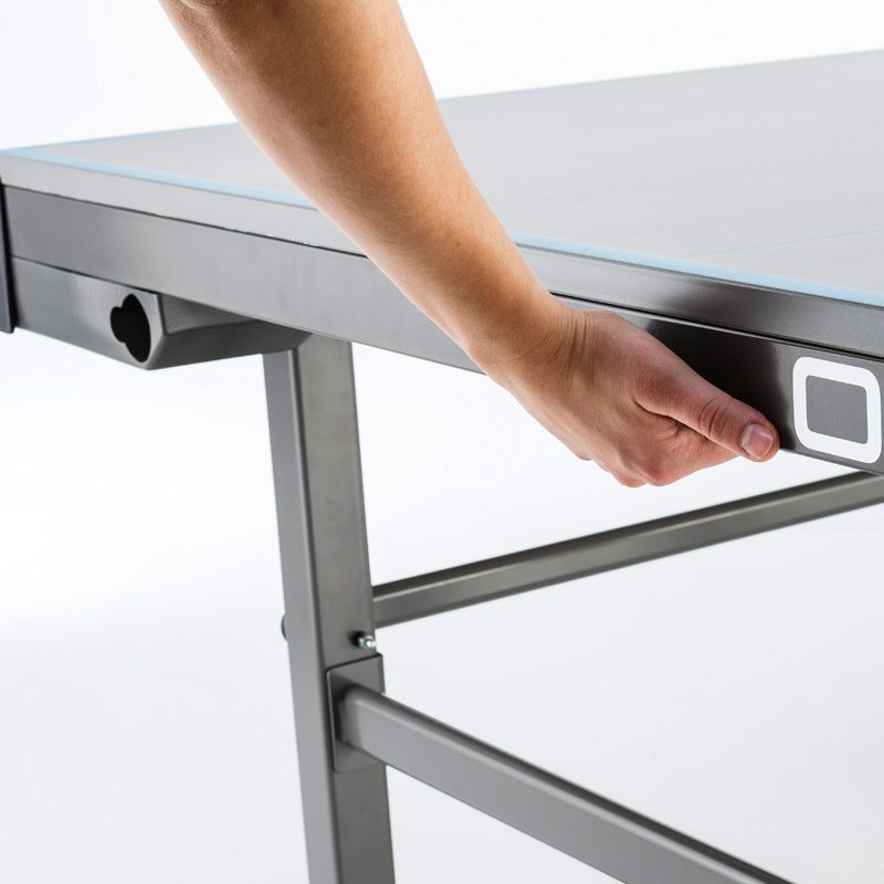 - Sklopení obou ploch hrací desky do přepravní polohy je díky inovovanému systému naprosto bezpečné a nenáročné i pro jednu osobu, po sklopení je pingpongový stůl bez problémů pojizdný a manipulovatelný.