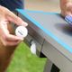 - Součástí stolu je síťka s možností výškového nastavení a s automatickým napínáním, kterou není nutné před sklopením hracích ploch demontovat.
