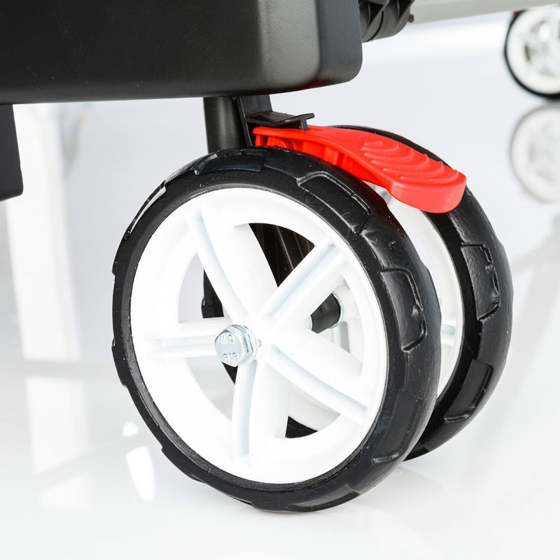 - 4 zdvojená terénní kolečka podvozku pro snadný transport i v nerovném terénu jsou po diagonále vybavena brzdami pro vyšší stabilitu při hře i v přepravní poloze.