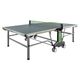 venkovní stůl, tmavě zelená hrací plocha, sklápění jednou rukou, vyrovnávací mechanismus, terénní kolečka s brzdou, zásobních míčků s podavačem, síťka součástí stolu, ochranné kryty na rohy, vyroben v Německu