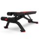 univerzální posilovací lavice, sklopitelná, polohovatelná opěrka zad i sedák, možnost negativního sklonu, transportní kolečka, hmotnost 27 kg, celková nosnost 272 kg