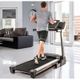 • Jednoduchá manipulace. Pomocí hydraulického tlumiče lze běžeckou plochu snadno sklopit. Následnou manipulaci s trenažérem usnadní transportní kolečka (umístěná vpředu).