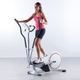- Vybavení trenažéru. Ergonomicky tvarované kyvné páky pro trénink horní části těla, dodatečné držadlo uprostřed s dlaňovými senzory pro snímání pulsu a intenzivní trénink dolní části těla, nastavitelný sklon počítače pro lepší kontrolu tréninkových hodnot a snadné přizpůsobení postavě trénujícího, kolečka pro manipulaci (umístěná vpředu), mechanismus vyrovnávání nerovností podlahy (vzadu).