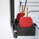 - Integrovaný držák pálek a míčků je součástí stolu.